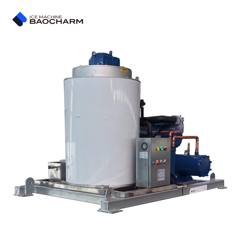 La machine à glace industrielle en écailles BAOCHARM BFPB-3T assure une production de glace fiable et à haut volume, essentielle aux opérations modernes de transformation de la pêche et des aliments.