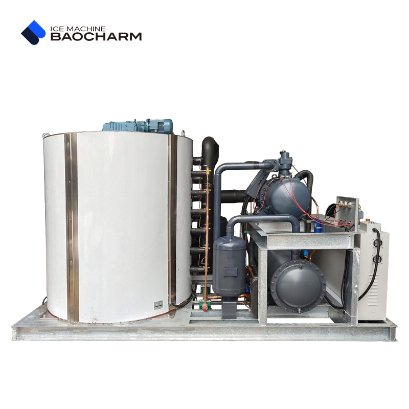 R404aPour les opérations industrielles où le refroidissement n'est pas seulement une nécessité mais un élément essentiel du processus de production, le BCPB-20T représente un changement de paradigme. C'est bien plus qu'un simple système de refroidissement. machine à glaçons produisant de la glace en écailles; il s'agit d'une solution de gestion thermique synchronisée à grande échelle. Conçu pour les installations nécessitant une production de glace massive et fiable, ce système s'intègre parfaitement production de glace en écailles à grande capacité Grâce à un système de stockage frigorifique performant sur site, l'approvisionnement est assuré 24 h/24 et 7 j/7 pour les opérations dans les secteurs de l'agroalimentaire, de la chimie et des grands projets de construction en béton. La glace devient ainsi une ressource précieuse gérée de manière stratégique.